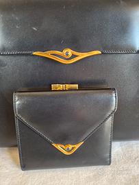 Bellissima borsa in pelle e portafoglio linea zaffiro blu.