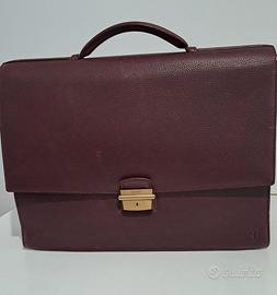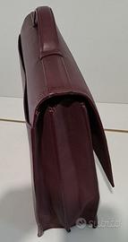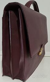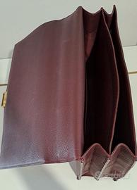 Borsa - cartella portadocumenti in pelle colore Bordeaux, con chiusura in metallo placcato giallo. Dispone anche di una tasca esterna sul retro.
