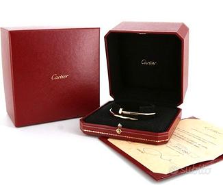 Prezzo di listino: 8950 Intramontabile bracciale Cartier Juste un Clou, realizzato in oro giallo 18 carati con l’inconfondibile design a chiodo. Misura 19, perfetto per un fit elegante e deciso al polso, simbolo di modernità e carattere. Completo di scatola originale e certificato, garanzia di autenticità e valore nel tempo. Un gioiello iconico della maison Cartier, ideale per chi cerca lusso e personalità. NOTA BENE: Per finalizzare l’acquisto dei nostri gioielli rigenerati è obbligatorio inviare copia del documento di identità. La documentazione deve essere trasmessa tramite WhatsApp o chat entro 3 giorni dall’acquisto. In mancanza, l’ordine verrà annullato. NELL'OFFERTA SONO INCLUSI -Certificato di autenticità e descrizione delle caratteristiche del gioiello. -Elegante astuccio regalo, perfetto per valorizzare il gioiello in assenza della confezione originale -Messa a misura in omaggio per gli anelli - SPEDIZIONE - La spedizione avverrà tramite corriere espresso ed è comprensiva di assicurazione. Qualsiasi richiesta di modifica, incisione o personalizzazione rende l’oggetto non idoneo alla restituzione.