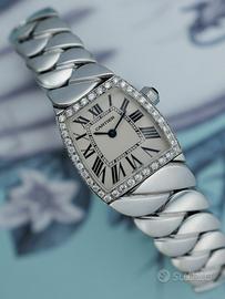Cartier Acciaio modello la Dona ref.2902 cassa di forma in acciaio con lunetta originale brillanti movimenti al quarzo . Orologio scatola e garanzia originale cartier