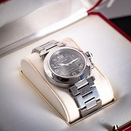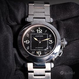 Raffinato Cartier Pasha referenza 2324 con elegante quadrante nero, caratterizzato dal design iconico e distintivo della collezione. La cassa dalle linee morbide e il tipico copricorona a vite con catena rendono questo modello immediatamente riconoscibile e intramontabile. Orologio dal fascino sportivo-chic, perfetto sia per un utilizzo quotidiano che per occasioni più formali. Movimento automatico di alta qualità, sinonimo dell’eccellenza Cartier. L’esemplare è completo di: •Scatola originale •Garanzia originale Venduto con: •Nostra garanzia sul buon funzionamento •Nostro certificato di originalità •Regolare fattura di vendita