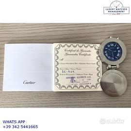 Orologio originale Cartier in ogni sua parte, molto raro, mai indossato, nuovo e senza segni di usura, full set (scatola, accessori vari, garanzia ufficiale Cartier), garanzia/dichiarazione di vendita nostro negozio valida per 12 mesi.