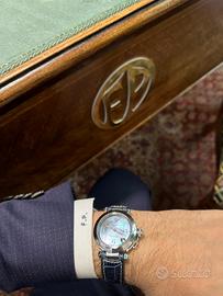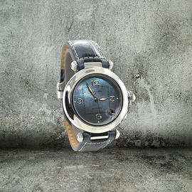 Vi proponiamo questo rarissimo Cartier Pasha con quadrante in madre perla nero / blu, la più rara configurazione mai prodotta su questa referenza. Il quadrante cambia colore in base all’esposizione della luce, generando dei riflessi magnifici. Ottimo per farsi o per fare un regalo. INTROVABILE, per chi ama differenziarsi dagli altri, per chi ama l’esclusività.