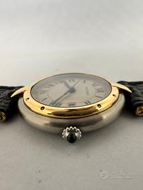 Vendo elegante Cartier Pasha de Cartier Cougar, uno dei modelli più iconici della maison, caratterizzato dal design inconfondibile con lunetta a viti, numeri romani e corona con cabochon blu.
