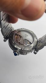 Dei Greci Orologi , storica orologeria nel centro di Roma vende Cartier Pasha GMT 2388. Fondello a vista.