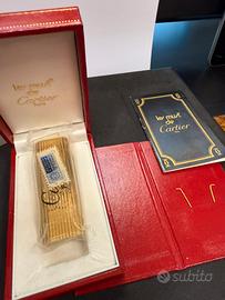 Accendino “les must de Cartier “ NUOVO, placcato oro 18kt. Completo di scatola, controscatola e libretto originale. Perfettamente funzionante. Introvabile in queste condizioni.