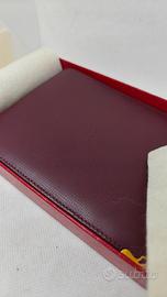 CARTIER portafoglio con porta libretto degli assegni e carte di credito in pelle bordeaux con metallo placcato oro giallo.