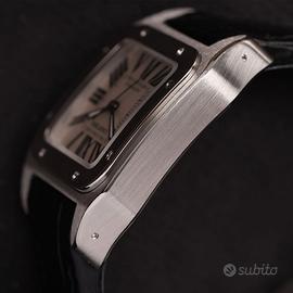 Negozio con sede fisica (nella Rep. di San Marino, si riceve solo su appuntamento) e sito internet vende: Cartier Santos 100 Misura Media da 33x44mm con cinturino in pelle nuovo Referenza 2878 Anno 2014 Completo di scatola e garanzia Cartier. Orologio assolutamente originale e ben mantenuto. Tutti i nostri orologi vengono consegnati con nostra garanzia 12 mesi. Per visionare altri orologi cercare il nostro sito: raimondi orologi. com IG: raimondi_orologi Per eventuale spedizione si gradisce un contatto diretto, possibilità di consegna di persona previo accordi.