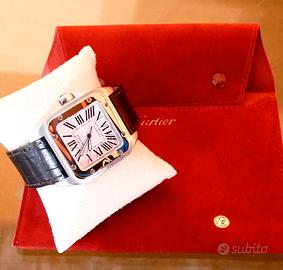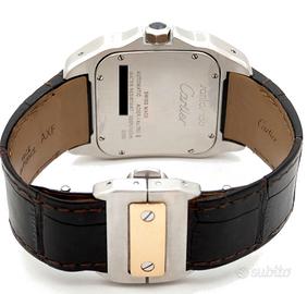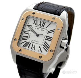 •OROLOGIO: Cartier Santos 100 XL ref:2656 •MOVIMENTO: Automatico, funzioni: ore, minuti e secondi. •QUADRANTE: Argentè. •CASSA: Acciaio e oro, vetro in zaffiro, ghiera in gomma, corona con zaffiro blu, impermeabile 100mt, dimensioni 38x51mm. •BRACCIALE: Coccodrillo nero. •CONDIZIONI: Orologio Usato in perfette condizioni. •CORREDO: Sacchetto Service Cartier. Si dichiara che l'orologio posto in vendita è completamente originale ed è esattamente quello visualizzato in queste immagini. Il prezzo è comprensivo delle eventuali spese di spedizione con corriere espresso assicurato. L’orologio viene venduto con regolare scontrino fiscale, completo di nostra dichiarazione di originalità e garanzia sul funzionamento per 12 mesi. IL PREZZO NON E’ TRATTABILE E NON SI ACCETTANO PERMUTE