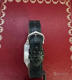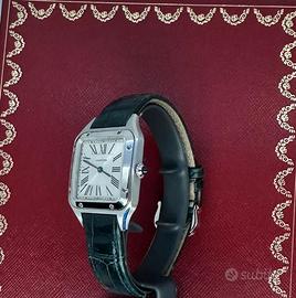 Cartier Santos Dumont Lady 27,5x37,5 mm vetro zaffiro quadrante bianco romani indici blu Ghiera acciaio Cassa acciaio cinturino in pelle coccodrillo blu , chiusura fibbia acciaio . Ref 4242 ser 656 anno 2020 Movimento al quarzo Cartier cal 057 . Corredo completo di scatola e Garanzia Ufficiale Cartier e Service Revisionato e perfettamente funzionante presso il nostro laboratorio Virole Watch snc garanzia 24 mesi