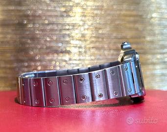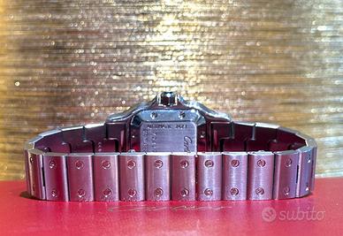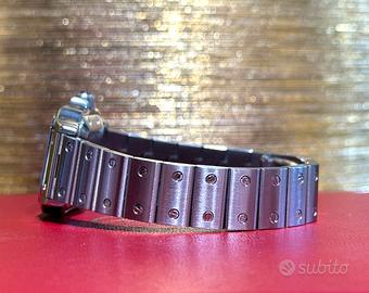 Orologio originale in tutte le sue parti. Un elegante Cartier Santos Galbée Lady Automatico ref. 2423, uno dei modelli femminili più iconici della Maison parigina, capace di coniugare design senza tempo e meccanica svizzera di alto livello. La cassa in acciaio dalle linee morbide e compatte si integra perfettamente con il celebre bracciale Santos Galbée, caratterizzato dalle iconiche viti a vista, garantendo comfort assoluto al polso e una vestibilità raffinata. Il quadrante argenté con numeri romani neri, minuteria chemin de fer e lancette azzurrate Cartier offre un'eccellente leggibilità e un'estetica immediatamente riconoscibile. All'interno batte un movimento automatico svizzero, affidabile e preciso, ideale per chi desidera un orologio da indossare quotidianamente senza rinunciare al prestigio del marchio Cartier. Le dimensioni Lady rendono questo modello perfetto per un polso femminile, elegante ma deciso. L'orologio è proposto in ottime condizioni ed è corredato di scatola originale Cartier, rendendolo una scelta ideale sia come primo orologio di alta gamma sia come pezzo da collezione. Un grande classico dell'orologeria di lusso, sempre attuale e facilmente rivalutabile nel tempo.