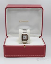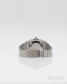 Si trova in condizioni pari al nuovo, con estetica impeccabile e funzionamento perfetto. L’orologio si presenta in condizioni eccellenti ed è animato da movimento automatico, completamente revisionato nel nostro laboratorio. La cassa rettangolare da 24x35mm, ispirata alla storica collezione Santos de Cartier, è caratterizzata dalle iconiche viti a vista sulla lunetta. Dimensioni ideali per il polso femminile, garantisce comfort ed eleganza quotidiana.