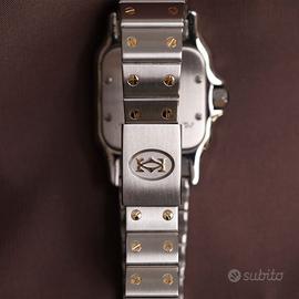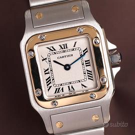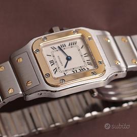 Negozio con sede fisica (nella Rep. di San Marino, si riceve solo su appuntamento) e sito internet vende: Cartier Santos misura da donna da 24x35mm in acciaio e oro, con movimento al quarzo. Ottime condizioni, corredato di scatola Cartier. Orologio assolutamente originale e ben mantenuto. Tutti i nostri orologi vengono consegnati con nostra garanzia 12 mesi. Per visionare altri orologi cercare il nostro sito: raimondi orologi. com IG: raimondi_orologi Per eventuale spedizione si gradisce un contatto diretto, possibilità di consegna di persona previo accordi.