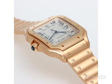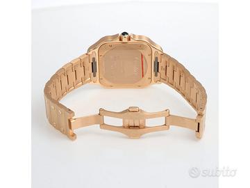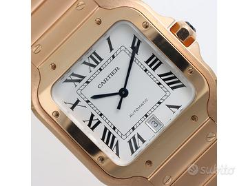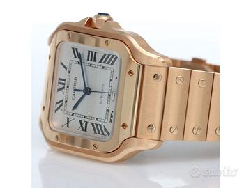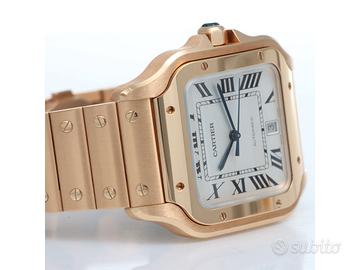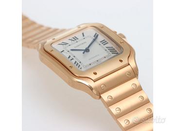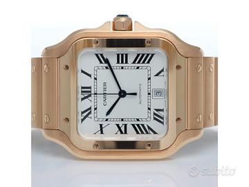 Clover Gioielli pone in vendita Cartier Santos Large Ref. WGSA0018 realizzato in oro rosa 18Kt, Quadrante bianco con numeri romani, Cassa 39,8. Bracciale in oro rosa 18Kt con chiusura a doppia deployanté.