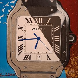 quadro raffigurante Cartier Santos, misura 40x40cm. opera originale dal design moderno dipinta a mano su tela. quadro originale realizzato e firmato dall'autore. interprezazione in chiave contemporanea dell'iconico Cartier Santos, con uno stile pop / luxury. forte contrasto cromatico ed impatto visivo deciso. -dimensioni 40x40 -colori acrilici -pezzo unico dipinto a mano -pronto da appendere dal vivo i colori risultano piu imtensi rispetto alla foto. prezzo trattabile. per ricerca omega, cartier, tudor, rolex, gadget. NB: il contesto attorno alla foto 1 si tratta di un immagine digitalizzata.