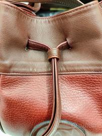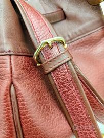 Meravigliosa pelle micro-martellata bordeaux con inserti e loghi in pelle liscia