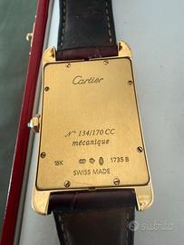 Vendo rarissimo Cartier Tank Americane in oro giallo ref:1735B Orologio a carica manuale movimento piaget, mai lucidato. Orologio creato per il mercato italiano in serie limitata a 170 pezzi. La sua particolarita é il quadrante in con numeri in rosso bordeaux abbinato al cintirino in alligatore sempre dello stesso colore. Potrei accettare permute se di mio gradimento.