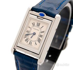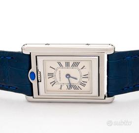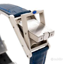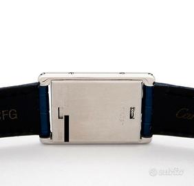 •OROLOGIO: Cartier Tank Basculante Lady ref 2386 •MOVIMENTO: Quarzo, funzioni: ore, minuti. •QUADRANTE: Argentè. •CASSA: Acciaio, vetro in zaffiro, dimensioni 22x32mm. •BRACCIALE: Coccodrillo blu. •CONDIZIONI: Orologio usato in ottime condizioni. •CORREDO: Scatola Cartier. Si dichiara che l'orologio posto in vendita è completamente originale ed è esattamente quello visualizzato in queste immagini. Il prezzo è comprensivo delle eventuali spese di spedizione con corriere espresso assicurato. L’orologio viene venduto con regolare scontrino fiscale, completo di nostra dichiarazione di originalità e garanzia sul funzionamento per 12 mesi. IL PREZZO NON E’ TRATTABILE E NON SI ACCETTANO PERMUTE