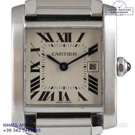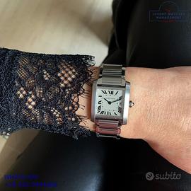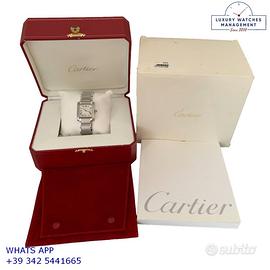Orologio originale Cartier in ogni sua parte, revisionato in ottime condizioni, segni di usura assenti o appena visibili, scatola originale Cartier, garanzia/dichiarazione di vendita del nostro negozio valida per 12 mesi.