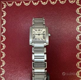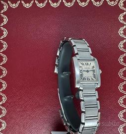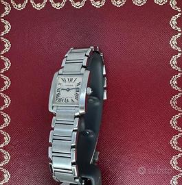 Cartier Tank Francaise Lady 20,5x18,00 mm vetro zaffiro quadrante bianco romani indici neri Ghiera acciaio Cassa acciaio bracciale acciaio , chiusura deplo acciaio . Ref 2300 ser CC34 anni '90 Movimento al quarzo Cartier cal 057 . Corredo completo di scatola e Garanzia Ufficiale Cartier e Service Revisionato e perfettamente funzionante presso il nostro laboratorio Virole Watch snc garanzia 24 mesi