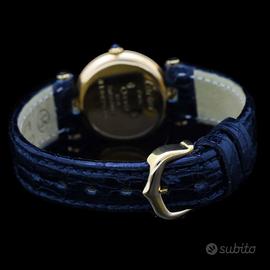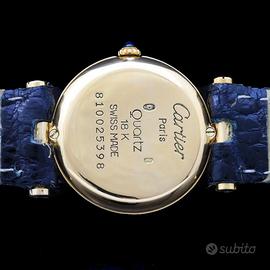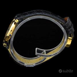ref 81002 cassa in oro 18kt 750 di 24 mm escluso corona quadrante bianco con numeri romani vetro minerale corona con zaffiro originale Cartier cinturino generico nuovo nero in pelle fibbia Cartier laminata oro movimento al quarzo calibro Cartier 81 perfettamente funzionante originale Cartier (non trattiamo falsi) in eccellenti condizioni !! garanzia internazionale Cartier del 1985 rilasciamo fattura di vendita nella quale certifichiamo l'orologio spediamo gratis in tutto il mondo