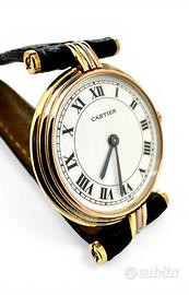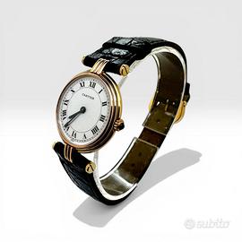 Cartier Vendome Trinity orologio lady in oro giallo 750 movimento quarzo calibro 81 referenza 881004 cinturino in pelle e fibbia ad ardiglione Cartier in metallo dorato cassa 25 mm quadrante bianco possibilità di finanziamento spedizione tracciata e assicurata