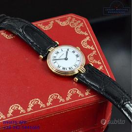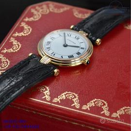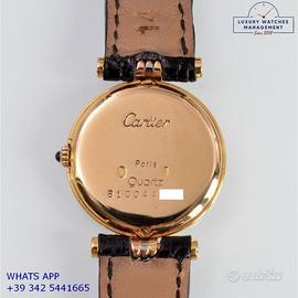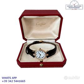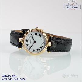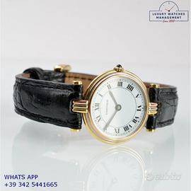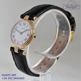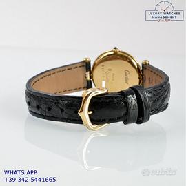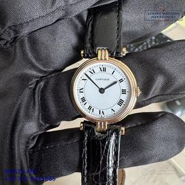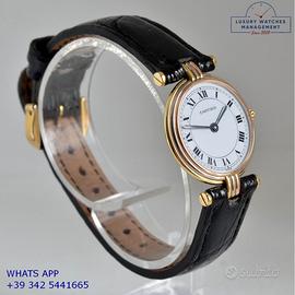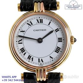 Per conoscere il prezzo e le caratteristiche tecniche dei nostri orologi visita il nostro sito ufficiale: https://lwmitalia.com/it Tutti i nostri orologi vengono verificati e revisionati dal nostro laboratorio specializzato “KeepTime Lab”: https://keeptimelab.com/it/ Cartier Vendome Trinity Louis Cartier Paris 25MM oro giallo, bianco e rosa 18KT, anno di produzione 1986, vetro zaffiro antiriflesso piatto, quadrante colore bianco con indici romani e sfere colore blue, movimento al quarzo batteria, cinturino alligatore lucido colore nero con fibbia dorata originale Cartier. Orologio Cartier originale in ogni sua parte, revisionato in ottime condizioni, segni di usura assenti o appena visibili, scatola originale Cartier dell’epoca, garanzia/dichiarazione di vendita nostro negozio valida per 12 mesi.