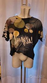 Casacca Donna manica corta, buona vestibilità, taglia L, marca DESIGUAL, davanti stampa multicolor, schiena nera.