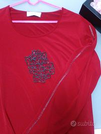 casacca di colore rosso scuro con particolare in lurex sul davanti e finta cucitura sulle maniche sempre in lurex, tg 44