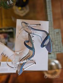 Stupendi sandali con tacco con brillantini Casadei Hollywood dazzle skylight. Indossati solo una sera per andare a cena con piccolo segno di usura e mai più messi, purtroppo mi sono grandi. Numero / taglia / n. 38