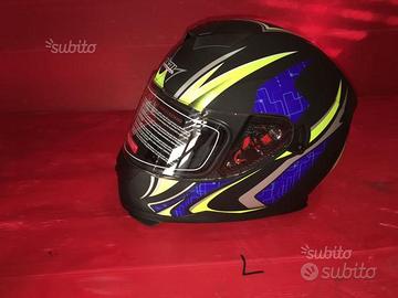 Casco integrale con visiera trasparente disponibile in vari colori bianco rosso blu nero giallo fluo ecc