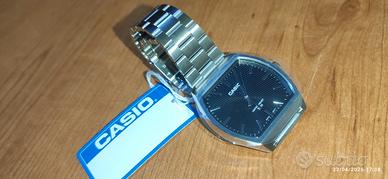 Orologio Casio MTP-B140D-1AVDF completamente in acciaio inossidabile (cassa e cinturino). Modello raro, non importato in Europa. NUOVO, MAI INDOSSATO, È ANCORA PROTETTO DALLE PELLICOLE ADESIVE. Una versione audace e squadrata del classico orologio analogico in metallo. Gli indici a barretta scintillanti risaltano su un quadrante di un colore raffinato, per un design chic ed elegante. L'impermeabilità fino a 50 metri ti permette di stare tranquillo nei giorni di pioggia. Descrizione tecnica: 🔸Dimensioni della cassa (L × P × A) 39 × 35,5 × 7,6 mm. 🔸Materiale della cassa e della lunetta acciaio inossidabile. 🔸Cinturino in acciaio inossidabile, chiusura regolabile. 🔸Resistenza all'acqua fino a 50 metri. 🔸Peso 76 grammi. 🔸Modello batteria SR626SW. 🔸Vetro minerale. 🔸Misura del cinturino compatibile da 150 a 205 mm. 🔸Misurazione del tempo analogico: 3 lancette (ore, minuti, secondi) Garanzia ufficiale Casio internazionale valida dal 30 marzo 2026. Completo di confezione originale. Se volete altre foto o video dell'oggetto posso inviare tramite telegram (no scambio numero, solo username)