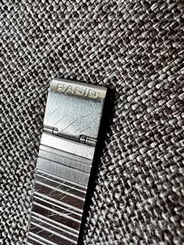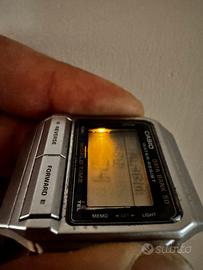 Metto in vendita dalla mia collezione privata un pezzo iconico della storia Casio: il Data Bank 50 modello DB-520. Un vero cult degli anni '80, celebre per il suo design "Space Age" e le sue funzioni futuristiche per l'epoca. CARATTERISTICHE E CONDIZIONI: * Modulo 675 (Japan): Cuore originale giapponese, sinonimo di qualità e precisione. * Estetica: Condizioni eccellenti, come visibile in foto. La cassa cromata è ben conservata e il display LCD è nitidissimo, senza macchie o "bleed". * Bracciale Originale: Monta il suo bracciale in acciaio "millerighe" originale, pezzo fondamentale per l'integrità del valore collezionistico. * Funzionamento: L'orologio è completamente funzionale in ogni sua parte. Luce interna operativa e display perfetto. * Nota tecnica: Il segnale acustico (beeper) è presente ma con volume basso, un classico segno del tempo facilmente risolvibile con una piccola revisione dei contatti interni. FUNZIONI PRINCIPALI: * Memoria Telememo (50 nomi/numeri) * World Time (Orario mondiale) * Cronometro e Allarme * Design vintage intramontabile PREZZO: Euro 180€ (leggermente trattabile per chi è seriamente interessato). Un'occasione rara per aggiudicarsi un pezzo di storia dell'orologeria digitale in queste condizioni estetiche.
