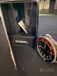 Casio Duro MDV-107 in ottime condizioni, usato pochissimo. Orologio subacqueo analogico con movimento al quarzo preciso e affidabile. Cassa in acciaio inox, lunetta girevole unidirezionale PEPSI, quadrante nero con datario e lancette luminescenti per una perfetta visibilità anche al buio. Resistente all’acqua fino a 200 metri (20 ATM), ideale per nuoto e immersioni. Cinturino originale in resina nera comodo e robusto.