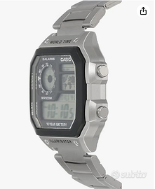 Orologio come da illustrazione. Batteria lunga durata, bracciale inox, cinque allarmi giornalieri, illuminazione del quadrante.