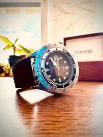 Stupendo e introvabile Casio con doppia ghiera, con rotazione antioraria tipica dei Diver per le immersioni sub con più carattere di un Submariner, mentre con rotazione oraria con bussola Nord Sud Est Ovest.