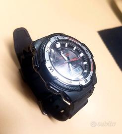 Casio modulo 5269, cassa da 45mm in resina, ghiera in alluminio, quadrante doppio analogico/digitale con movimento giapponese, doppio sensore, funzione Compass(bussola) e termometro, orario delle albe e dei tramonti, fusi orari, impermeabile 10 BAR, luce led interna. Ci sono dei graffi sul vetro ma si notano solo controluce, ottime condizioni generali...funziona benissimo, è perfetto