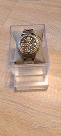 orologio Casio da uomo MTP- 1299 con cinturino in acciaio, datario, quadrante nero, lancette fluorescenti.