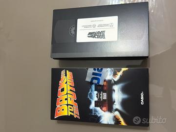 Casio Vintage CA-500WEBF-1AER x Ritorno al Futuro. Questa collaborazione celebra il 40° anniversario del film cult del 1985. Design e Caratteristiche: L'orologio calcolatrice si ispira alla DeLorean, la macchina del tempo del film, con pulsanti colorati che ricordano i circuiti temporali. Dettagli Esclusivi: Il fondello presenta un'incisione del "condensatore di flusso" e il logo del film è inciso sulla fibbia del cinturino in acciaio inossidabile. Confezione Speciale: Viene fornito in una confezione da collezione unica, progettata per assomigliare a una videocassetta VHS d'epoca. Specifiche: L'orologio ha un modulo digitale con funzioni di calcolatrice, cronometro, allarme e calendario automatico