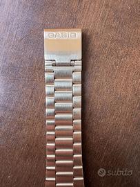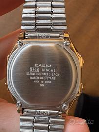 Vendo iconico orologio Casio Vintage (Modello A168WEGC) nell’esclusiva colorazione Gold con quadrante mimetico (Camouflage). Un pezzo intramontabile che unisce lo stile retrò anni '80 a un tocco moderno e audace. L'orologio è perfettamente funzionante e in ottime condizioni estetiche. Caratteristiche Principali: Design: Cassa e cinturino in acciaio inossidabile con placcatura dorata. Quadrante: Digitale con trama camouflage militare. Funzioni: Luce LED (Illuminator), cronometro 1/100 sec, sveglia giornaliera, calendario automatico e formato 12/24 ore. Resistenza: Water Resistant (schizzi d'acqua, pioggia). Chiusura: Regolabile facilmente senza bisogno di strumenti (si adatta a ogni polso).