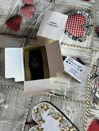Casio Vintage total black originale, in ottime condizioni. Usato pochissimo, l’orologio si presenta molto bene e funziona perfettamente. Completo di scatola originale e libretto istruzioni. Leggero e comodo da indossare, stile vintage intramontabile. ⚠️ L’orario è da regolare. Vendo per inutilizzo. Prezzo trattabile.
