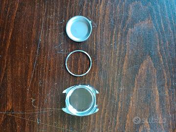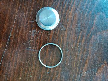 Come da foto cassa in acciaio con vetro plexi, fondello con anello di chiusura. Senza pulsantino cambio data. Per orologio automatico Slava 2427