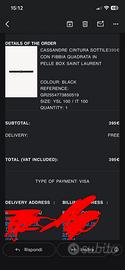 Nuova, mai usata, in condizioni pertette! In pelle nera con iconica fibbia YSL color oro✨ 📦 Completa di scatola e dust bag originali (come da foto) 🎁 Perfetta anche come regalo 📏 Lunghezza 100cm x Larghezza 3cm 🧾 Possiedo scontrino elettronico 🚚 Spedizione veloce 📩 Scrivimi per info o misure!