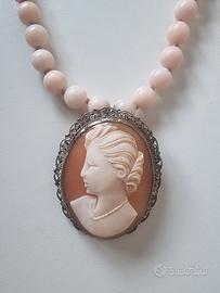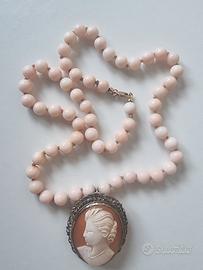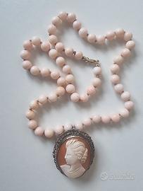 CATENA CORALLO ROSA VINTAG CON CAMMEO