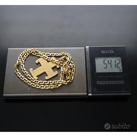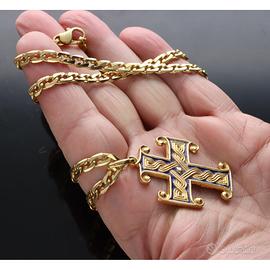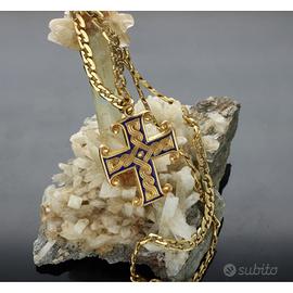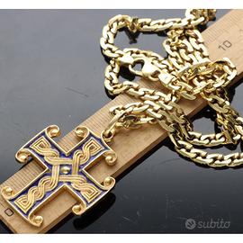 spettacolare croce smaltata accompagnata da una poderosa catena firmata "Urbano" , tutto in oro massiccio 750 / 1000. con scatola e garanzia.