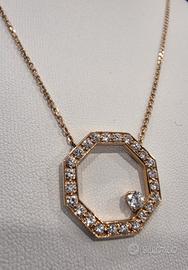 Splendido collier 18 ctr con centrale geometrico stile Messika con incastonato 25 diamanti per totale ct 1.30 g color vs ..peso gr6.34 lunghezza catena totale cm 45