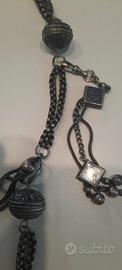 bellissima catena orologio tasca uomo o monachina donna con fischietto per asola. tenuta bene leggera imperfezione sulla testa del fischietto come da foto. Lunghezza 48 cm circa.