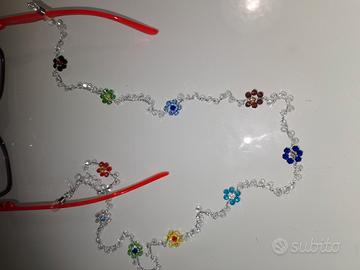 Vendo catenelle per occhiali, artigianali, fatte da me con perline di cristallo e uncinetto, molto graziose idea regalo originale, in foto non rendono come dal vero.