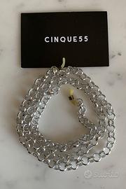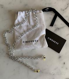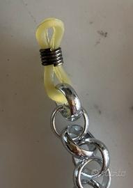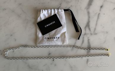 Catenella porta occhiali CINQUE55 Jewels, per ogni tipo di occhiale, in metallo ad anelli tondi di 5,60 mm, lunghezza totale 80 cm., leggerissima 16 gr, con terminali in silicone regolabili, mai usata nella sua confezione regalo originale senza imperfezioni, possibile anche ritiro a mano a Milano, zona Niguarda, con la formula visto e piaciuto.