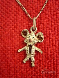 Tutto argento 925 come da punzone e timbro argentiere. Bellissima catenina in argento 925 firmata AIROLDI lunga circa 45 cm con raffinato ciondolo sempre in argento 925 con punzone e timbro argentiere raffigurante TOPO GIGIO con smalti blu e marrone chiaro lungo circa 3.5 cm anellino compreso. Tutto originale vintage anni 70. Gioiello unico. Unisex. Vintage originale anni 70. Condizioni come da foto. Oggetto autentico.